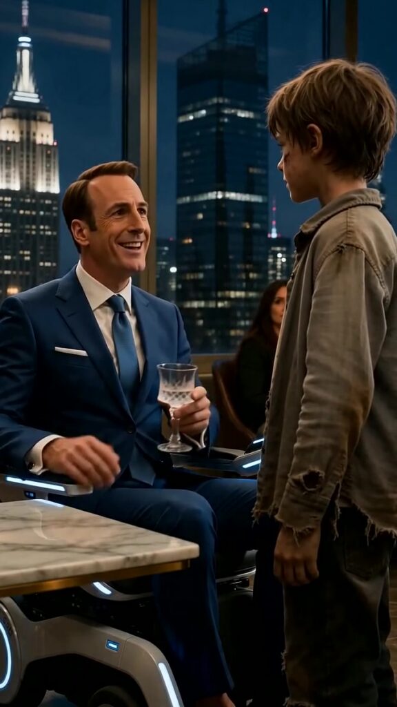 The boy stopped at Julian’s table as though he’d been invited. He was all angles and thinness, clothes torn in practical places, shoes worn through at the toes. His hair stood up in stubborn tufts, as if combs were an invention meant for other children. He didn’t stare at the wheelchair with that hesitant pity Julian had trained himself to endure. He looked straight at Julian’s face, with an expression that made the air around them feel newly sharp.