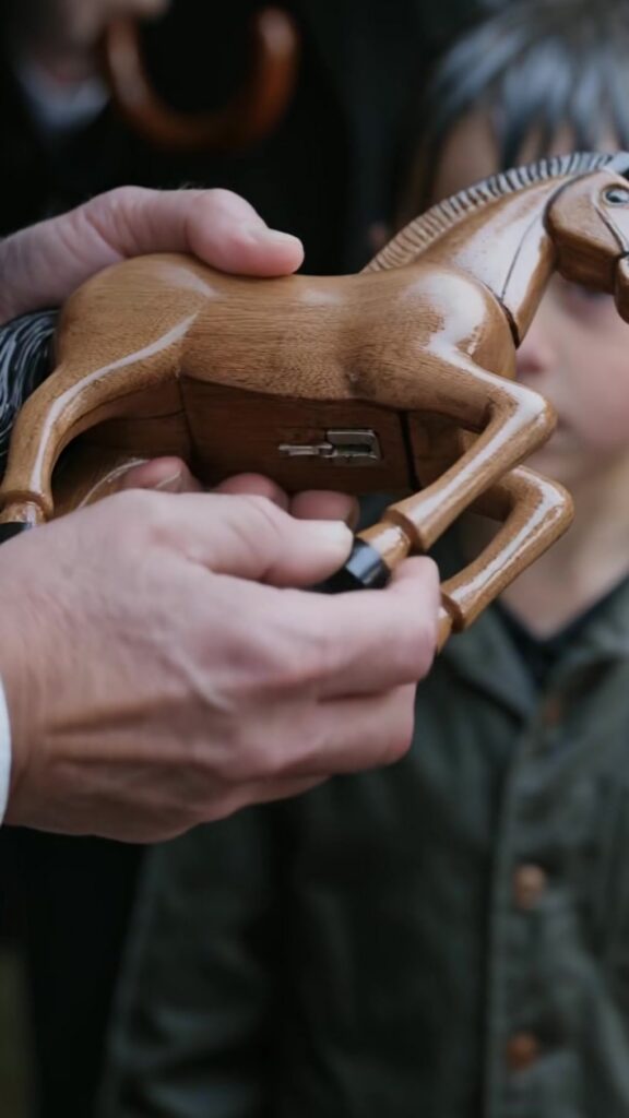 The priest held out his palms. Cal hesitated, eyes darting to Elena’s pale face, then to the coffin, and finally to the priest. He surrendered the toy horse like a confession.