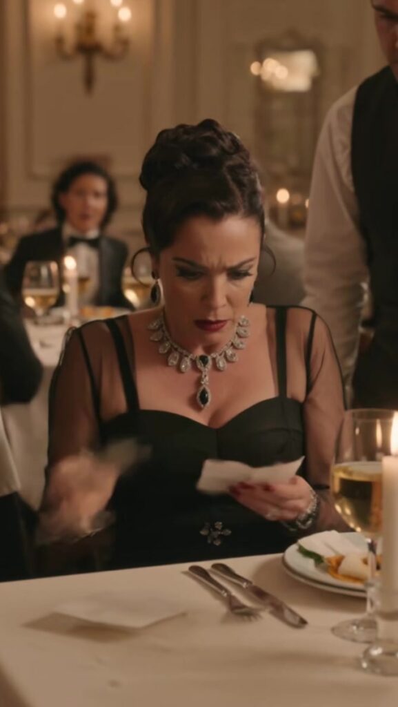 Celeste didn’t answer. Her gaze stayed locked on the ink, as though the letters had rearranged themselves into something impossible. A server hovering nearby—Nolan, the head waiter, a man who had served politicians and celebrities without blinking—leaned in, perhaps to de-escalate, perhaps to protect the tablecloth from scandal. His eyes flicked down. He froze.